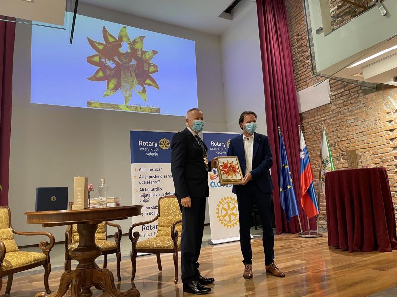 Predsednik Rotary kluba Velenje Peter Peer se je za spominski znak zahvalil ter izpostavil dobro sodelovanje z Mestno občino Velenje (MOV), pri čemer se je tudi zahvalil za gostoljubnost v Vili Bianca ter veliko podporo našim aktivnostim v Vili Bianci s strani Zavoda za turizem Šaleške doline in direktorice zavoda, ge. Alenke Kikec.