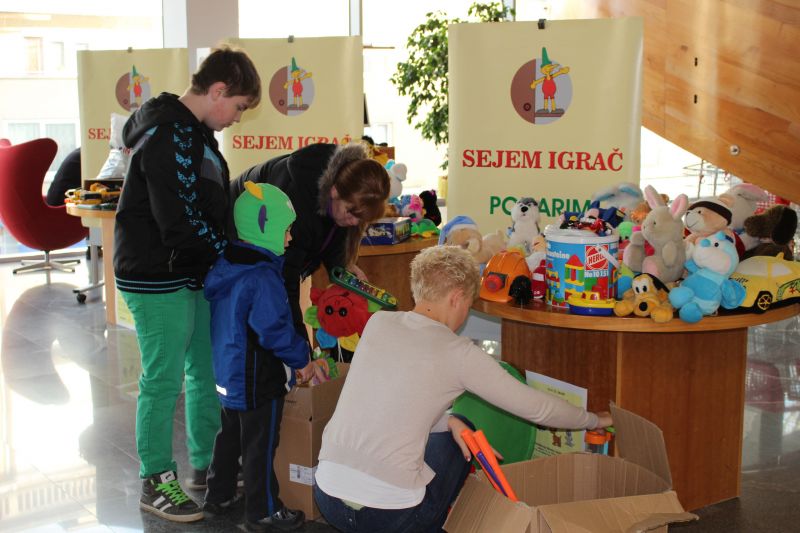 Rotary klub Velenje v sodelovanju s Knjižnico Velenje že od leta 2009 prireja sejem igrač, kjer lahko starši in otroci igrače prodajo, zamenjajo za druge ali jih preprosto podarijo kateremu od obiskovalcev sejma ali knjižnici. Knjižnica podarjene igrače pregleda in tiste, ki so primerne za izposojo uvrsti v svojo zbirko, ki smo jo pred štirimi leti skupaj postavili in se lepo širi. Ostale igrače se posredujejo otrokom, ki ne zmorejo nakupa nove igrače.